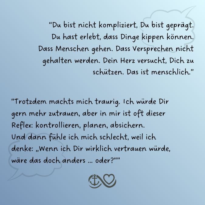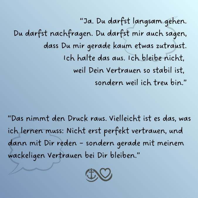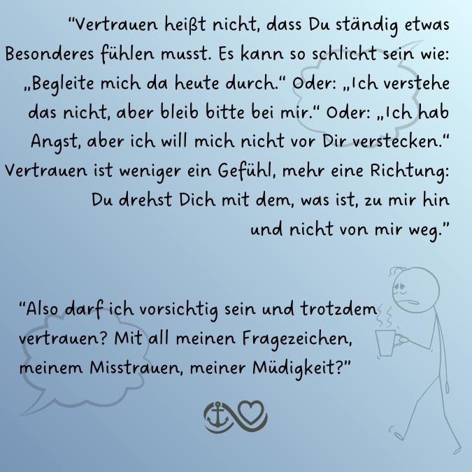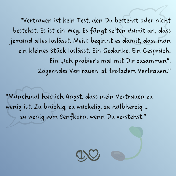 eine schöne Idee mit den Türchen. Gefällt mir wirklich gut. Und dein Text heute über das Vertrauen macht mir wirklich richtig Mut. Du hast so wertvolle Gedanken und eine unbeschreibliche Begabung die Dinge auf den Punkt zu bringen. Ich danke dir und danke Gott, dass er uns allen in dir einen so wunderbaren Engel geschickt hat.